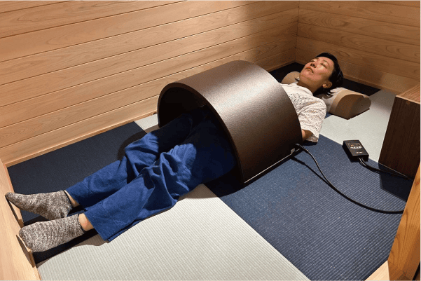 遠赤外線で安心・安全に、優しく体を温められる体験。服を着たまま入れて、そのまま、眠れる心地よさ。